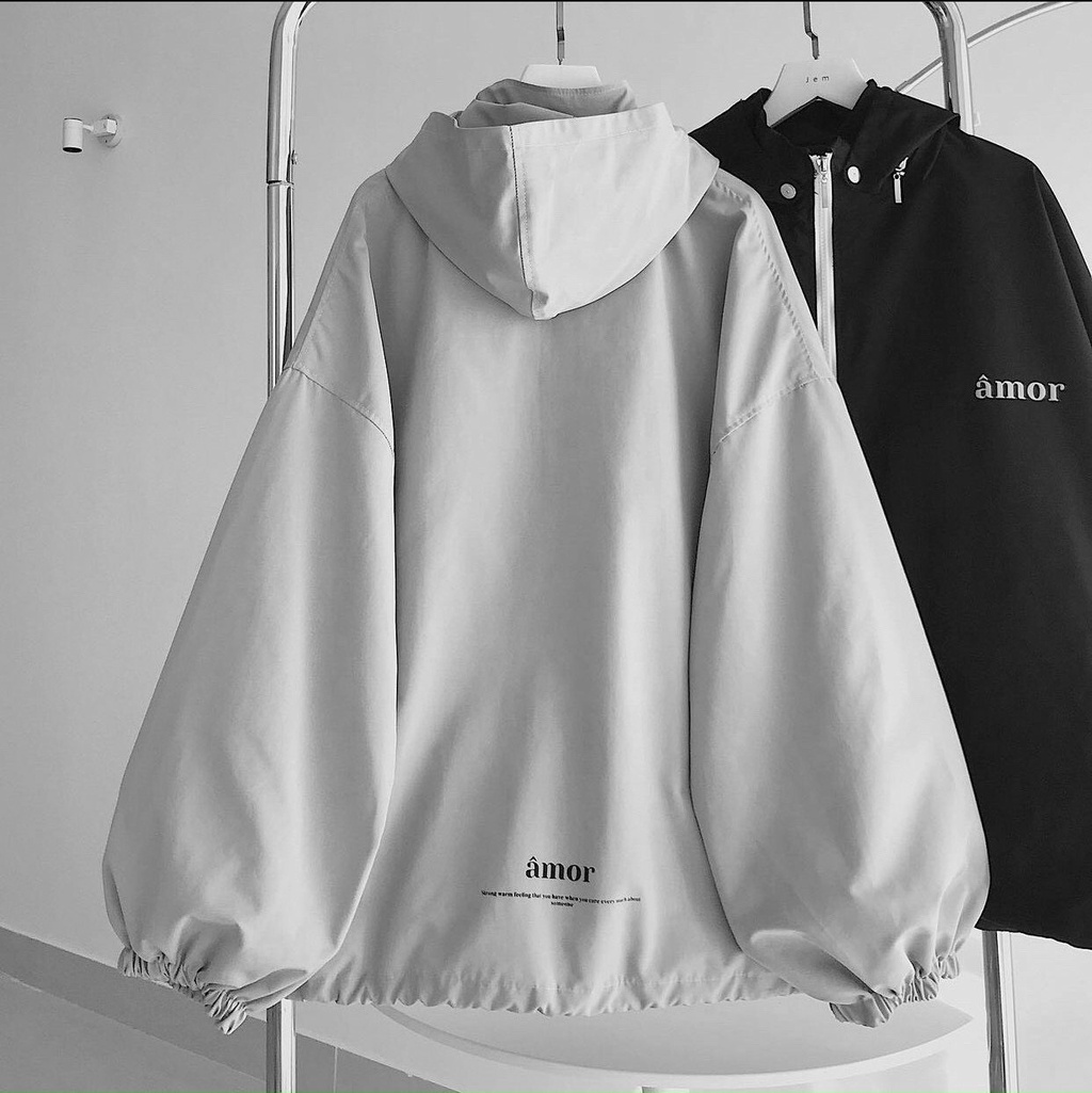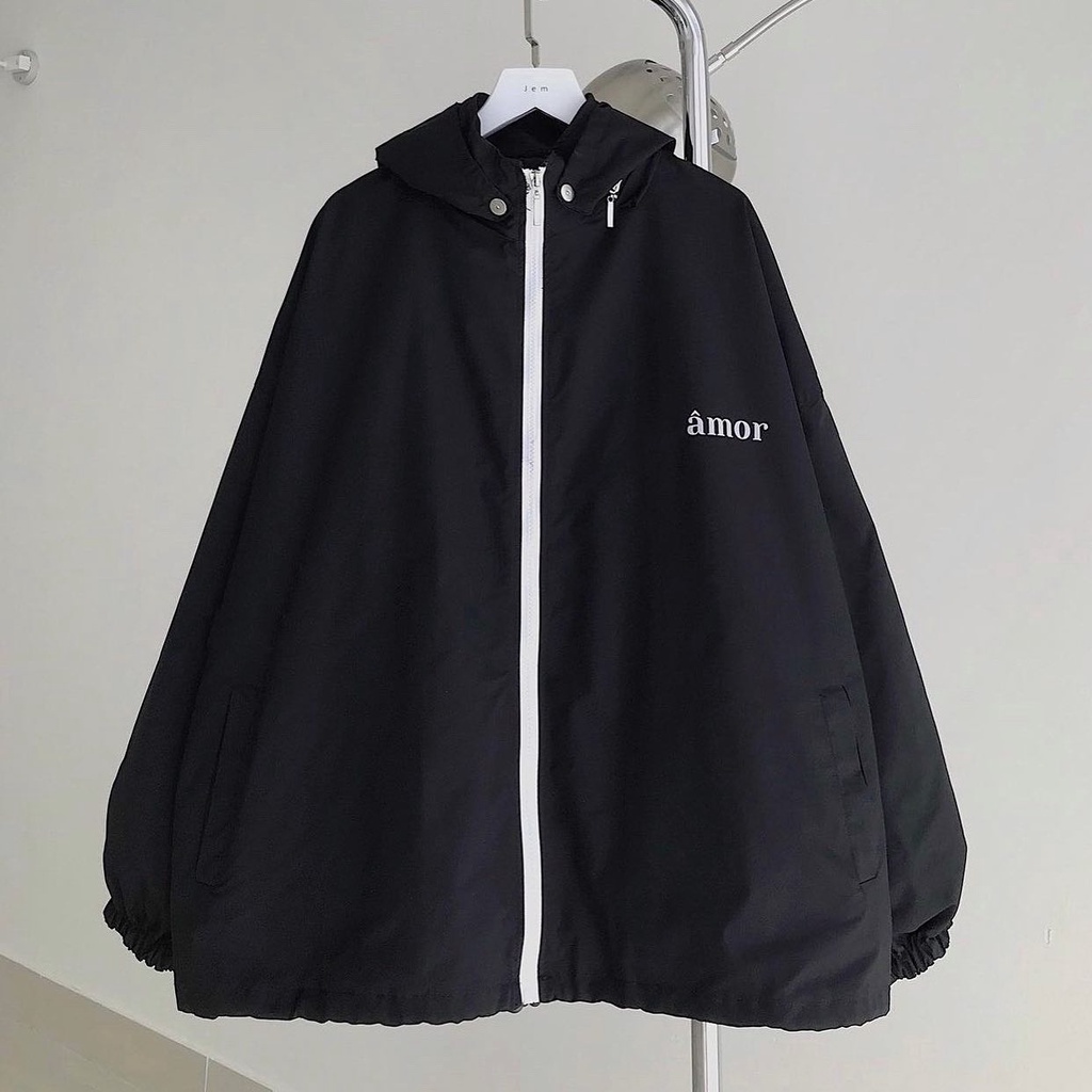 Áo khoác dù jacket nam nữ AMOR đen xám form rộng unisex khoác ngoài chống nắng