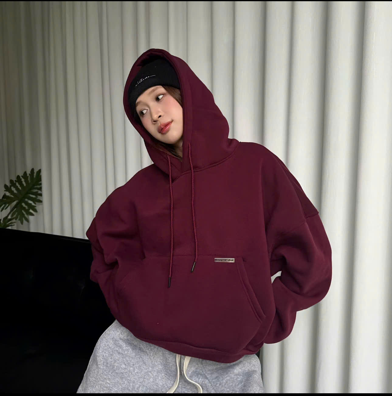 Tag kim loại cao cấp ở gấu áo – điểm nhấn sang xịn, khác biệt với hoodie thường.