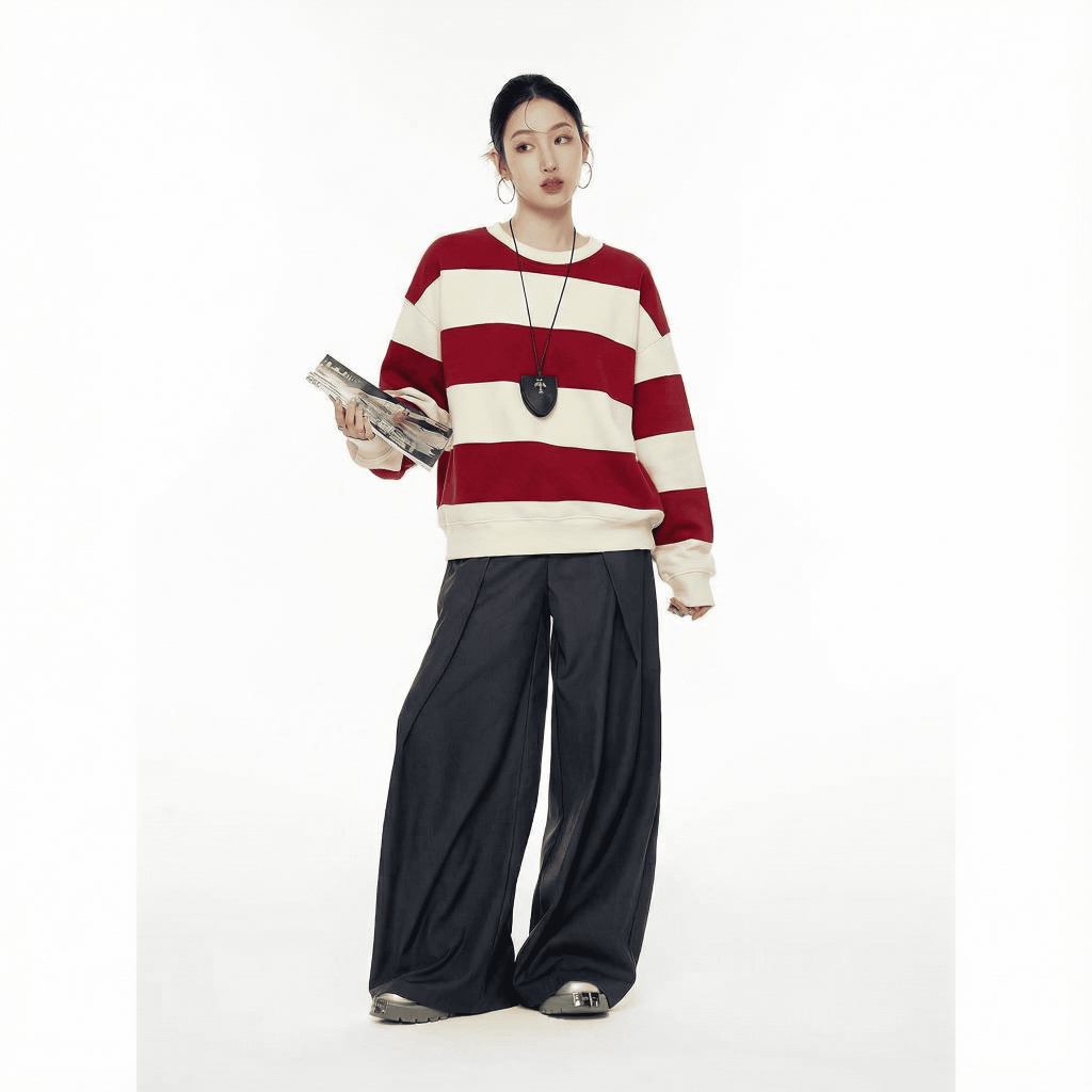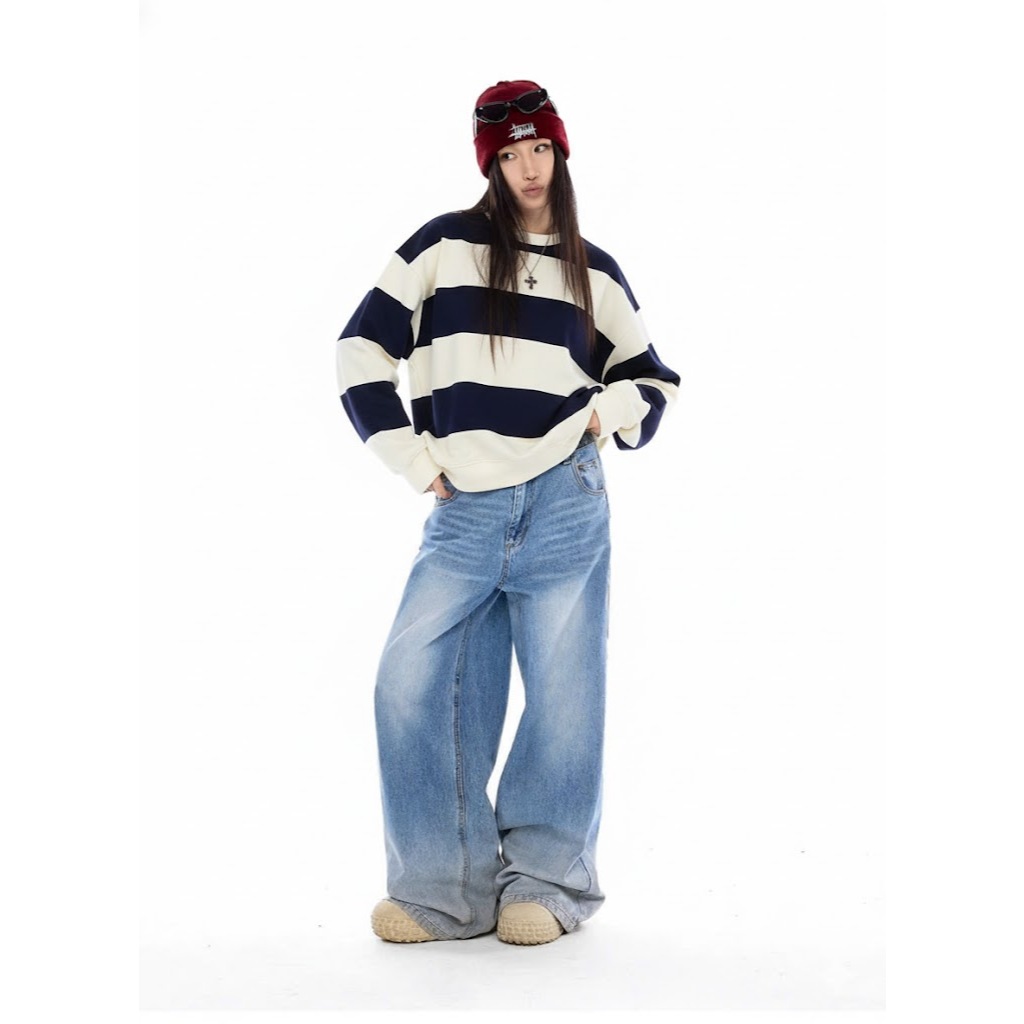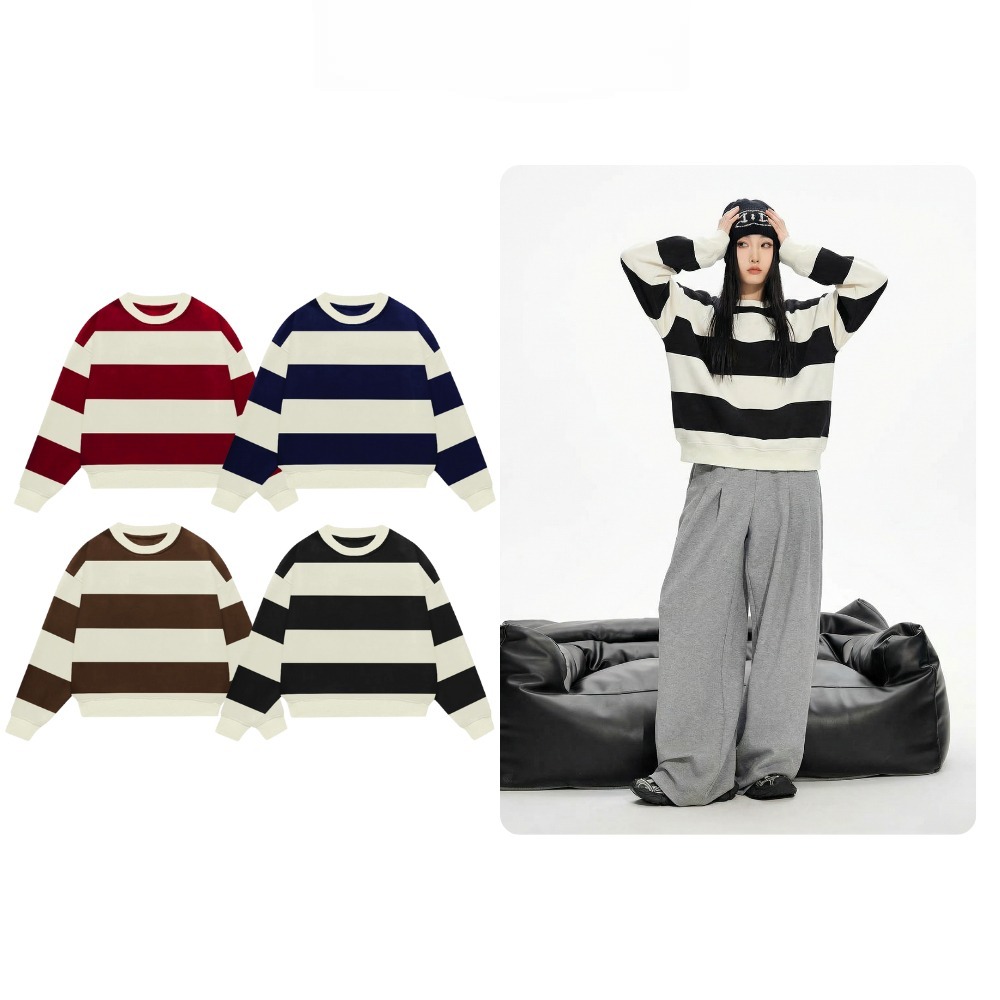 ✨ Áo sweater kẻ sọc phong cách Hàn Quốc, form boxy rộng rãi, dễ phối đồ, phù hợp mặc đi học – đi chơi – dạo phố