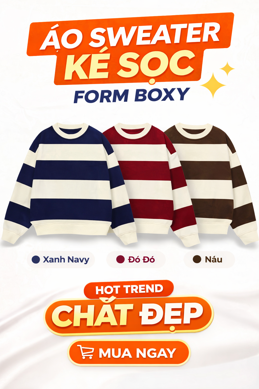 📦 Thêm vào giỏ ngay để không bỏ lỡ mẫu áo sweater kẻ sọc form boxy hot trend nhé!